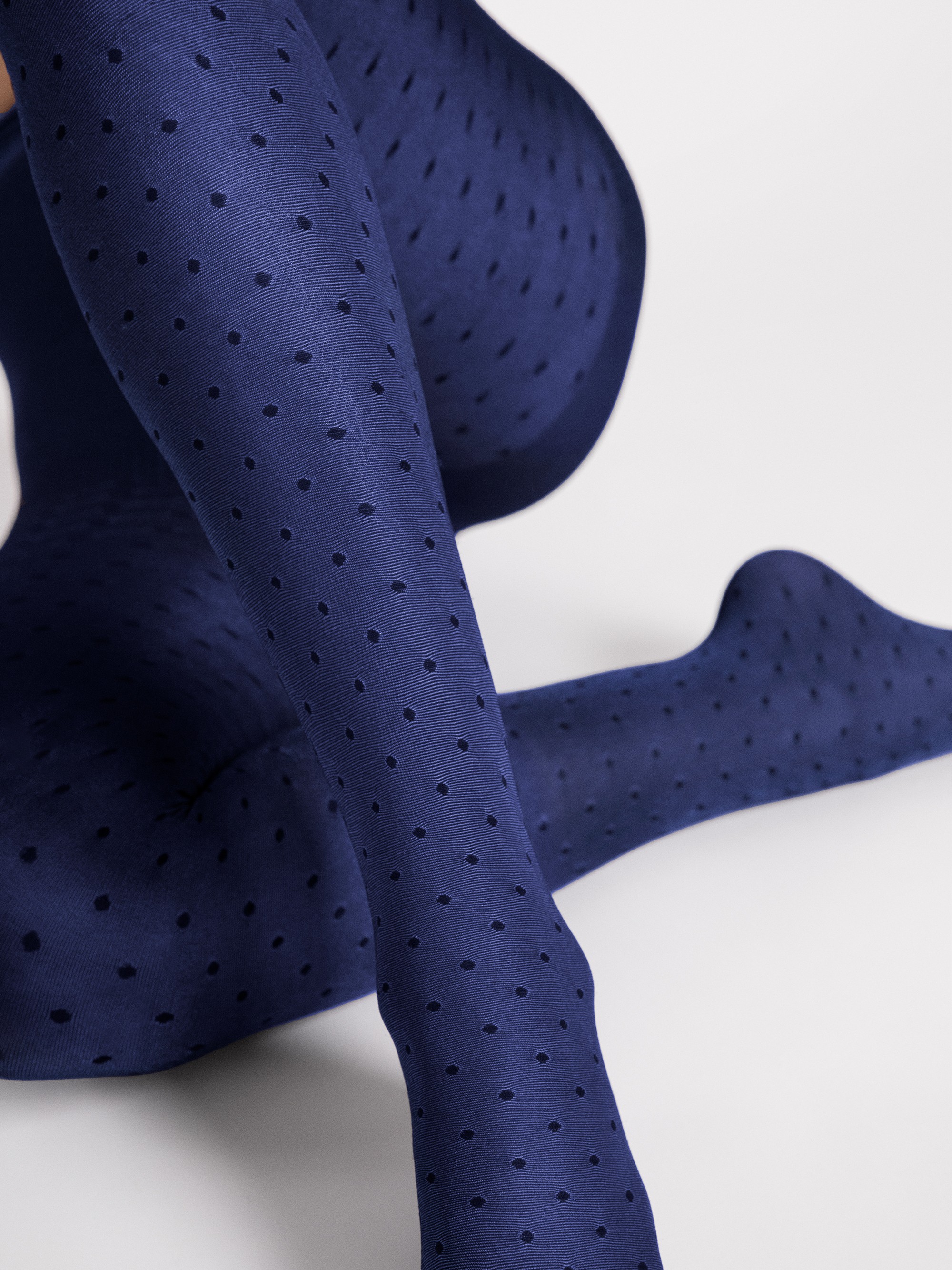 Semi-blickdichte, gemusterte Strumpfhose - Der wunderschöne Blauton strahlt Ruhe und Gelassenheit aus, während die feinen Pünktchen für eine interessante Textur sorgen.