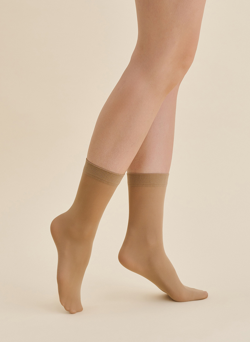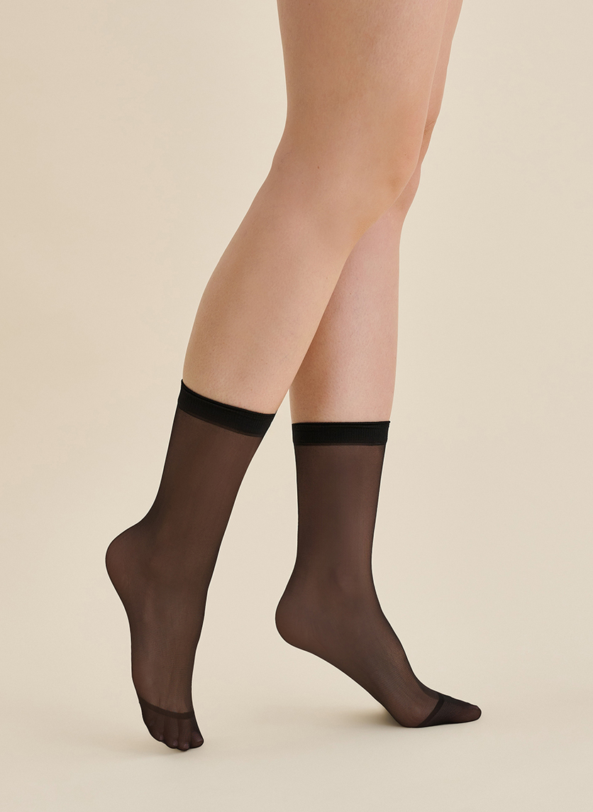 Klassische Feinsöckchen ohne Muster, mit einem nicht einschneidenden Bund und verstärkter Spitze, 15 DEN (2 Paar).