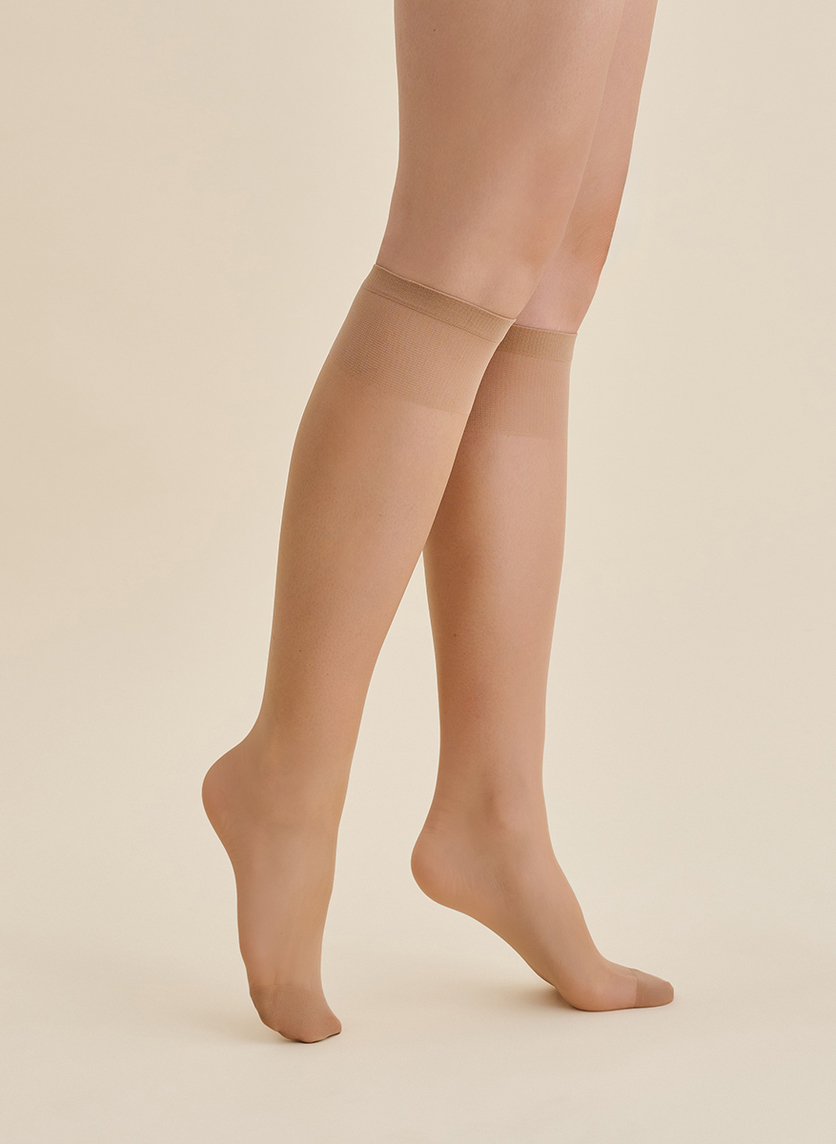 Klassische Kniestrümpfe ohne Muster, mit einem nicht einschneidenden Bund, 15 DEN (2 Paar).