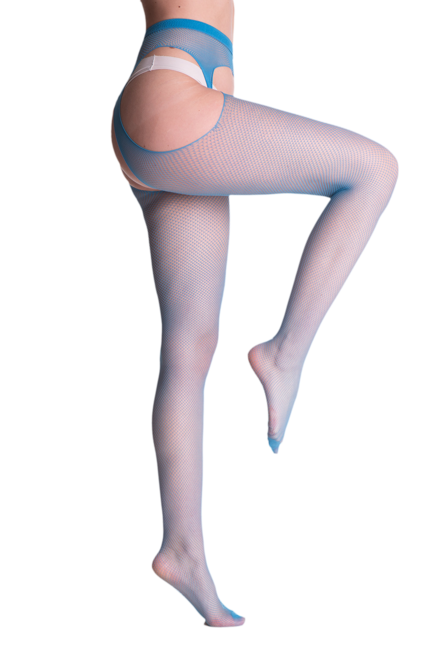 Strapsstrumpfhose aus weichem Netz, feinmaschig, mit dezent verstärkter Spitze. So bequem und einfach zu tragen wie eine gewöhnliche Strumpfhose und so verführerisch wie Strapsstrümpfe!