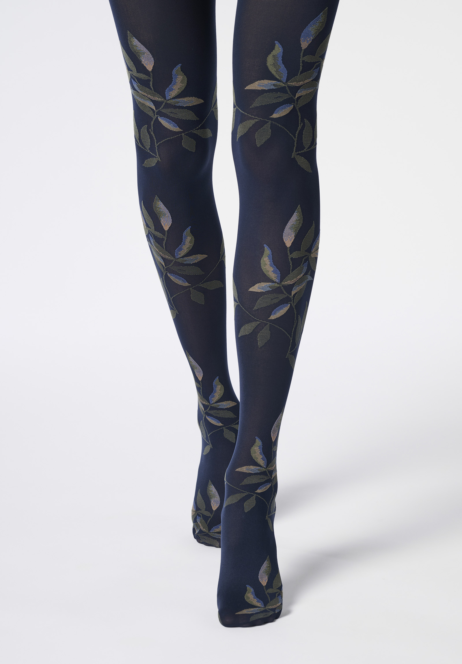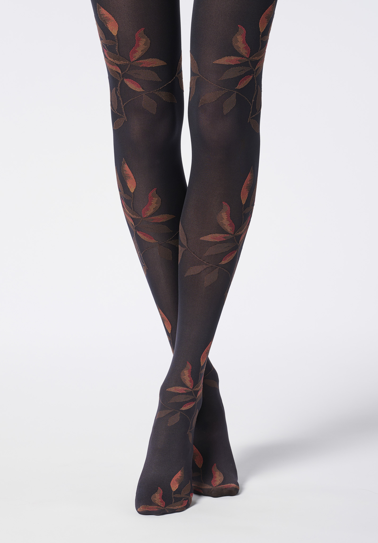 Produktinformationen "Oroblu - Blickdichte Strumpfhose mit zweifarbigem, floralem Muster in Herbstfarben"