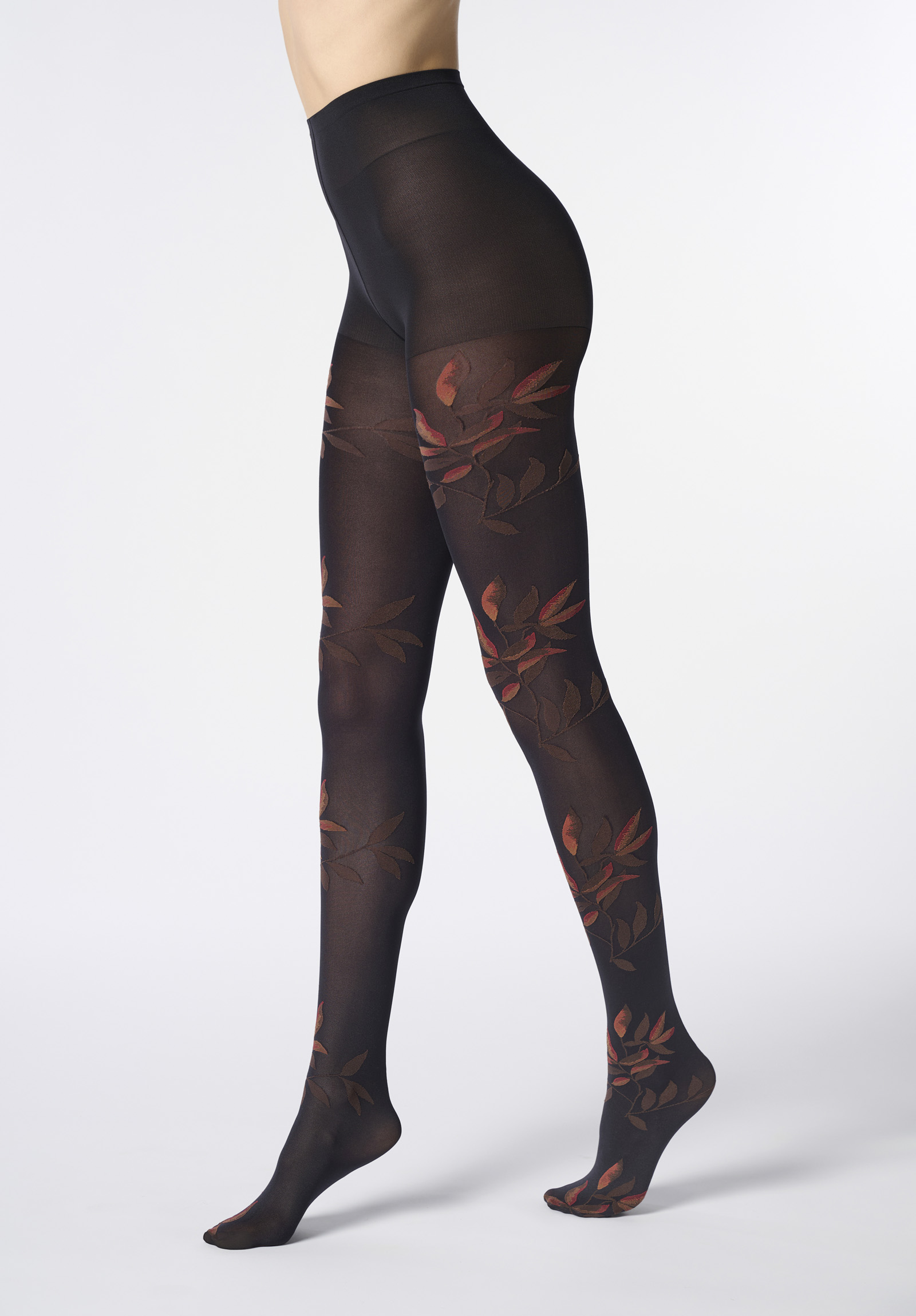 Weiterführende Links zum Produkt  "Oroblu - Blickdichte Strumpfhose mit zweifarbigem, floralem Muster in Herbstfarben"