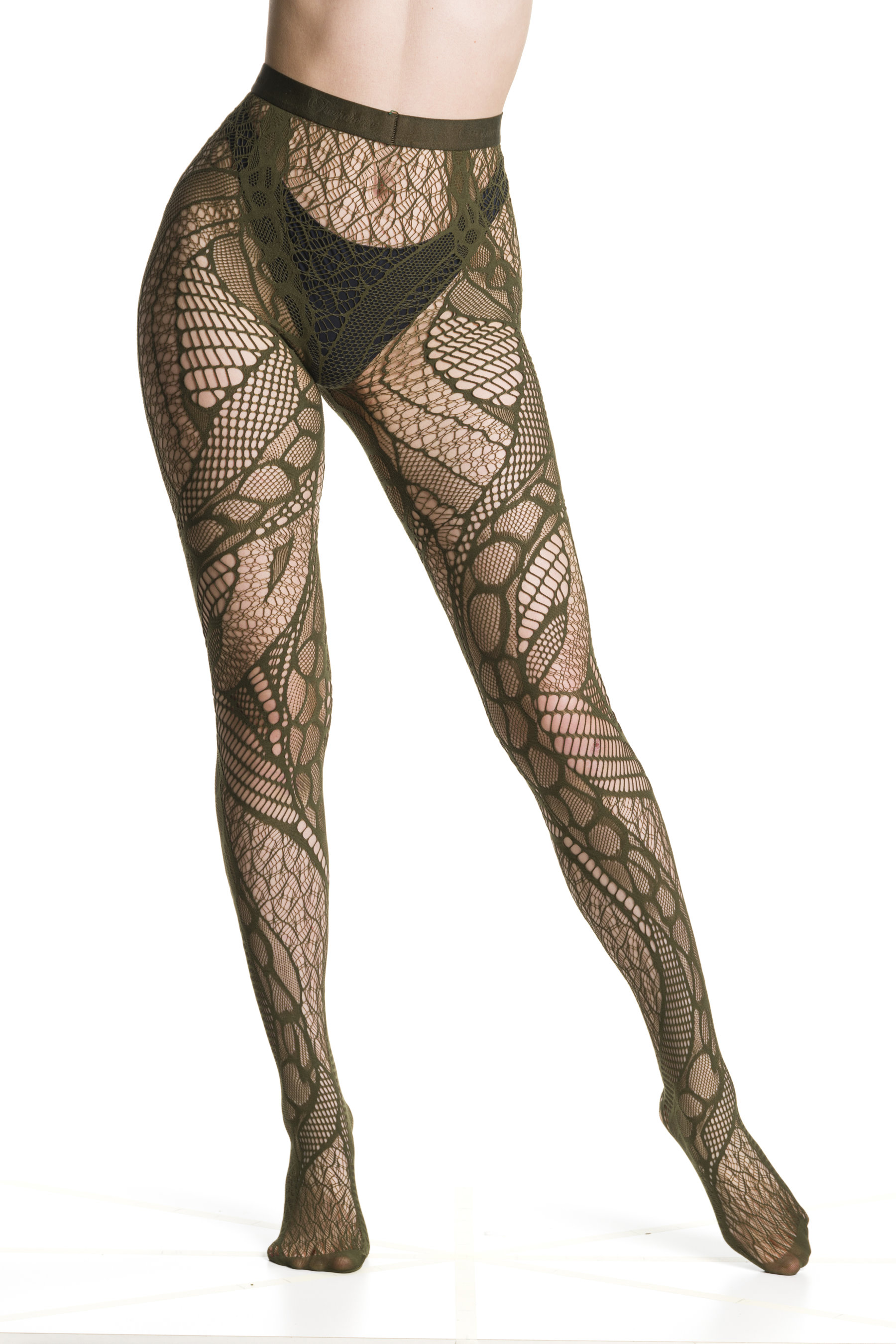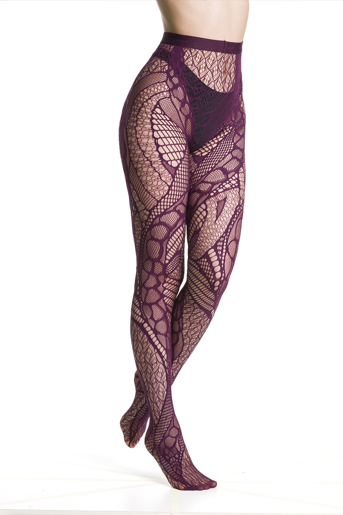 Weiche Netzstrumpfhose mit einem auffälligen Patchwork-Muster in Spitzenoptik